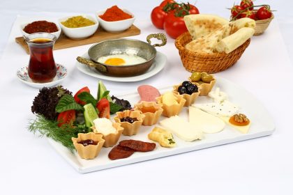 Anadolu’ya özgü peynirlerle yörük,kaşar,örgü, Van otlu peynirleriyle iki çeşit reçel, bal,siyah zeytin,yeşil zeytin,domates,salatalık,tereyağı,kaymak,sucuk,tek göz yumurta,sigara böreği,macar salam ve 3 adet çay ile…