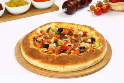 Özel pizza sosu,mozarella peyniri,julyen et parçaları,mantar,renkli biber,domates,siyah zeytin ile…