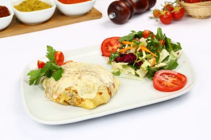 Krep hamuru içerisine özel sosları ile tatlandırılmış tavuk göğsü,mantar,kaşar peyniri ile graten edilerek,özel salatası ile…